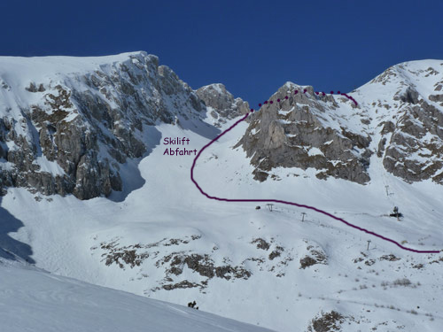 Skitourenvarianten Durmitor Süd (flache “Vorderseite”/ Cista Strana)